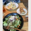 今日のおひるは相盛りランチ〜ハンバーグとチキンカツのセットにしたー!いつもの安定の味でこれはこれで安心するw