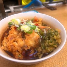 久しぶりに一由そばで ゲソ天蕎麦大盛り☝️ 太蕎麦を注文する人も多いが私はふつうの 麺がお気に入り😋 濃いスープやっぱり旨いな〜