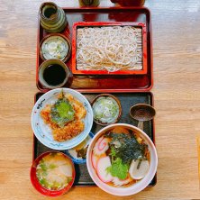 ◆もり 700円 ◆いか天丼 1,000円 ※税込 先日、いか天丼のミニを食べて美味しかったので、今回は普通盛りを食べに来ました。 蕎麦そのものの味も確かめたくて、もりもいただきました。 どちらも期待通りとても美味しかったです。 温かいお茶を出してくれるのも嬉しいです。それも蕎麦茶です。 ところでこの新亀さん、この街に引っ越して来た30年前に既にありましたがいつからやっているのか知りたくて聞いてみると創業は戦前の約85年前だそうで、立派な老舗でした。これからもずっと続けて欲しいです。