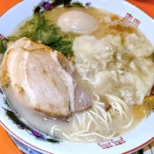 久々に くる久留くるりんちょ♥ とんこつスープに九州系極細麺の "ワンタンメン"♥ 麺はもちろん"バリカタ"たい♥ じっくり煮込んだ白濁したスープが 身体に沁みます "カリカリ"と呼ばれる 豚の背脂もたまらないのと "ワンタン"も ちゅるちゅる感がたまらない♥