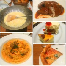 イタリアンレストランにて ⚪︎チーズフォンデュ ⚪︎ピザ ⚪︎海鮮パスタ ⚪︎牛肉のなんちゃら(笑) ⚪︎ケーキ 会社の人達と食べ飲み 料理も多彩 3時間の飲み放 ケーキはたまたま誕生日の人がいたので サービス? 隣の同僚 糖尿で「旨いものカロリー高く危険」 だと言ってあまり食べず (呑む方はガンガン) お陰で沢山 美味しいものを食べちゃいました( ^ω^ )