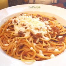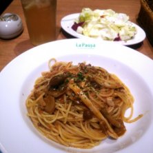 モッツァレラボロネーゼ なんとなくパスタな気分、挽肉ゴロゴロでお腹いっぱい。