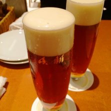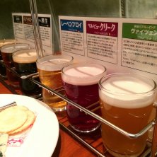 う◯このような形のモニュメントが載ったビルで有名な浅草アサヒビール。その中にあるバー『フラムドール』で、ビール飲み比べに挑戦しました〜。ベルギービールもいいけど、やはり日本ビールが最高ですね。