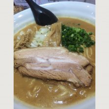 「濃厚魚介豚骨 狼煙そば」 スープがどろり。超濃厚! こんなどろどろスープ初めて! 硬め麺にスープがよく絡む〜 どろりスープでなかなか冷めないからか、食べてるととにかく暑くなって身体中から汗噴出 美味しかったでーす( ´ ▽ ` )