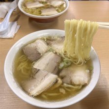 注文したのはネギチャーシュー@1050円。 待つこと暫し、ラーメンの登場です。先ずは黄金色のスープを一口。色からして薄い醤油テイストと思いきや、キッチリ濃いめの塩味。ベースはスッキリとした味わいの清湯豚骨スープ。適度なのこってり感があります。化調が強すぎるのは残念。麺は中太ちぢれ麺で程よい弾力感があります。 これでもかと言わんばかりに散りばめらた一口サイズのバラチャーシューは歯応えのある弾力タイプ。噛み締めると口の中に肉の旨味がじんわりと広がります。このお肉は好き。