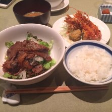 今日は外食で洋食ランチ。 エビフライは頭から全部食べれた。お肉もしっかり味が付いているので野菜と一緒に頬張るとちょうど美味しい。嫁さんが頼んだ特製オムライスもかなり美味しくボリュームたっぷり。セットの冷製スープも一味違う。 また来よう!