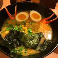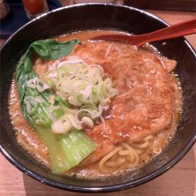 カニだし味噌らー麺 /¥980- 新千歳空港店限定メニュー。 カニの風味は感じるが、スープがちょっと塩っ辛いのが残念。 麺は中太縮れ麺。少し硬めの茹で加減。 蟹の身はボソボソした食感。その他、半熟卵 海苔 コーン 刻んだ水菜。