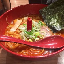 千歳空港でラーメンを食べたくて。 目的のお店は長蛇の列。仕方なく帯広ラーメン屋さんへ。 辛味噌中辛を注文しました。 ラーメンの真ん中に立っているのは赤唐辛子! 店員さんに食べ方を聞いたところ、 食べたら大変なことになるので見るだけにしといてとの回答。唐辛子を食べなくても十分にから〜い
