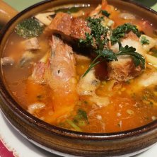 ブイヤベースが食べたくて来た。 残ったスープでおじや(^。^) 上の段はオードブル盛り合わせと牡蠣グラタン