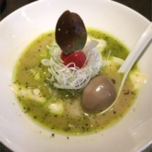 栃木の人気店に初訪問〜〜 今年20杯目は バジルdeグリーン味噌+チーズプラス+こく旨玉子!! これは絶品です!!! おしゃれな店内はボサノバ調のBGMが流れ、ほぼイタリアンな感じですが、新感覚らーめんと良くあいます!! 若いな女性客もおおく、おじさんはビビりましたが、これだけ美味いと、リピ確定〜〜 次は味噌らーめんたべよう〜〜(♥´꒳`*)(*´꒳`♥)