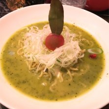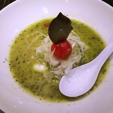 バジルdeグリーン味噌¥890 チーズトッピング¥130 ☆☆☆☆☆☆☆☆8 ラーメンを食べに来たか疑心暗鬼になるビジュアル……けど一口麺をすすると確かに味噌ラーメン(o^O^o) まろやかなコクと甘味にバジルの爽やかさ!うまっΣ(゜Д゜) 斬新さを含めて☆8!! デフォルト食べにまた来たいな~♪♪