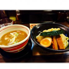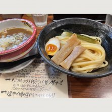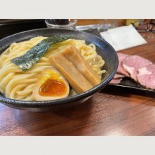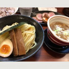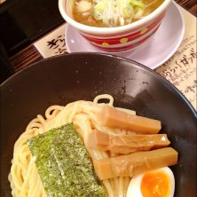 つけ麺 ずっと行きたいなぁと思ってたお店! 麺はもっちりで表面がぬるっと 濃厚なつけ汁ですが 気づけばペロッと食べ終わってました 味変えのすだち(だったかな?笑)酢も いい感じでした