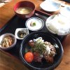 ポークステーキ。益子に来たときは必ず行きます。この中にご飯を混ぜて、玉ねぎソースと一緒に食べるのが美味しいのです。