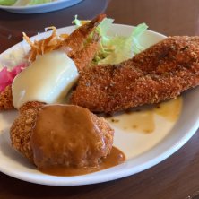奈良へ梨を買いに行った帰りにパパさんとランチ〜 本日のランチ チキンカツ エビフライ カレーコロッケ