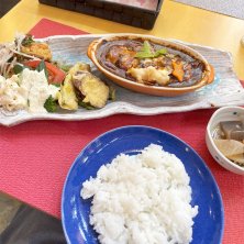 2品ランチ☆ 黒板のメニューから、好きな物を2品選べるランチ♫煮込みハンバーグと手造りコロッケをチョイス!しっかりデミソースに煮込まれたふわふわハンバーグ♫家庭的な素朴な味わいながら、しっかりこだわりも感じて美味しい! ゆったりした時間を過ごせるレストラン♫\̏(º̻∇º̻)/̋ #サーフィン飯#ぶらりグルメ旅#三重#鵜方#町の洋食屋さん#町の洋食屋さんらぶ♡#ヤケド注意w#生憎のお天気☂