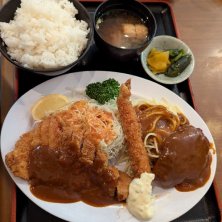 お昼ごはん♪ 高取山にハイキング⛰️ ご飯、キャベツ、スパゲッティが大盛・普通・少なめどれも無料で変更できます❤️これで普通😅ボリューム凄いです✨ ☆ビフカツ