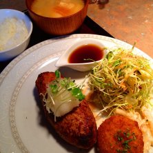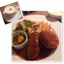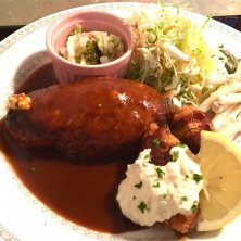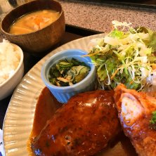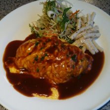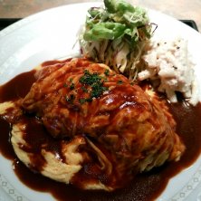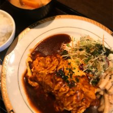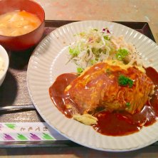 ランランランチ♪ 何だか急に食べたくなって…♡ 《とろたまバーグ》 ドミグラスたっぷりのトロトロふわふわオムレツの中は チキンライスとかではなく…… ジューシーなハンバーグ♡ 見た目ボリューミーだけど、優しいお味♪ ご飯、豚汁が付いて990円、 ほぼ しぇいえん♡(≧∇≦)b 小さいお店だけど、お気に入りの洋食やさん