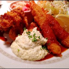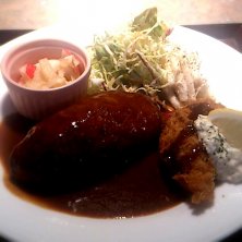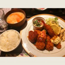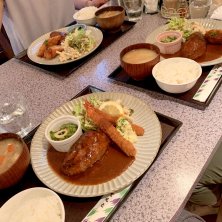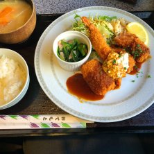 海老フライと牡蠣フライ。具だくさんの豚汁がついているのが嬉しい。次来るときはハンバーグかな。
