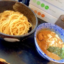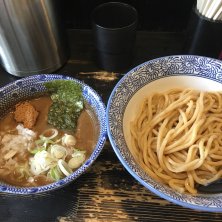 埼玉ナンバーワンつけめん 麺が太くて丸みを帯びており、ツルツル。全粒粉。 スープの味はありがちな魚介豚骨で、甘さは控えめ。特出すべきはそのドロドロさ。ペーストか、ポタージュか見間違うほどのドロドロさ。ここまでドロドロは初めてかも。