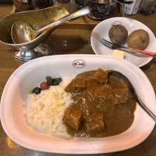 マルシェのあと、カレーを食べに神保町へ。 約10分ほど待って、店内へ。 並んでいるときにオーダーを取りに来たので、座ると間もなく蒸かしたての熱々のジャガイモ、そして、すぐにビーフカレーがきました。 誰もが美味しい!と、絶対に言うカレーです。 美味しかったです。癖がないので、次は癖のあるカレー屋さんへ行きたいです。笑