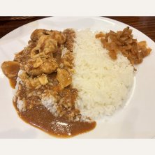 久しぶりに新橋で昼食、冷やしcurry。「冷やし」とは言え辛さは本格派。大汗かきました。