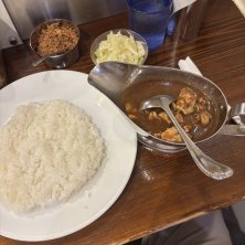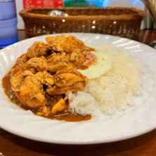 たまに無性に食べたくなるカリカルのカレー。今日は目玉焼きチキンカレーで。