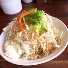 お持ち帰り。そうそう前回きたときは地図みてグルグルまわって、おかしいなぁないなぁ…合ってるはずなのに?…んあーシャッターしまっとる休みかい( ̄□ ̄;)!! で、今日は無事お初でございます嬉しい✨ここもカレー🔎すると出てきていつかはの候補に入ってた。野菜とチキン。えー‼️この大根、( ゚Д゚)ウマー♡キタなこれも👏煮込み具合といい味もいい。サラダも別にドレッシングつけてあったり丁寧なことしてる。カレーの味にしても雑ではないことが感じられる。他のカレーも是非とも食べてみたい(。_。)φ