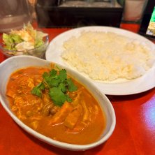 もはや何か分からないほどのパクチー盛り! トマトとほうれん草のチーズカリーは最高です。