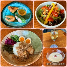 ✳︎彩りサラダ ✳︎タパス3種盛り合わせ ✳︎ルーローハン ✳︎杏仁豆腐 ✳︎スパークリングワイン テラス席もあるので、今度はそっちにしてみよう。