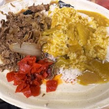 かつて山手線の西側に棲息する食べ盛り男子の胃袋を満たしてきた牛友チェーン。 絶滅したけど居抜きのインスパイア系があると聞いて来てみた。牛友の皿! でも、なんとも言えないチープな味がよかったのに何だか美味しくなってる(^^; よく言えば汁だくのしゃびしゃび肉に辛口でも全然辛くなかったスタミナカレー。 それが、そこそこ美味しい肉がいっぱいのってるしカレーもまあまあ辛い! 旨い♪ってんではないが敢えて言おう。旨い! 同じ牛友の店に通ってたことが判明し、ご主人とひとしきり盛り上がってしまいました(^^)