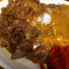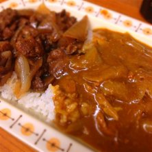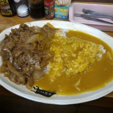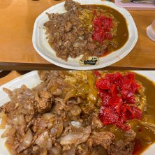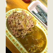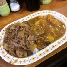牛丼カレー小 辛口 /¥650- 品川区大井 大井町駅近く あっさり目の牛丼カレー。 小とは言え、他店基準で並と大盛りの間位のボリュームがある。 牛肉も柔らかくて多く盛り付けてあるので満足感良し。