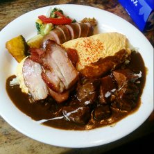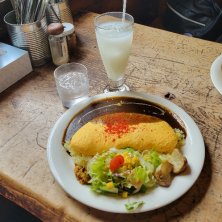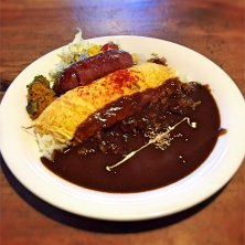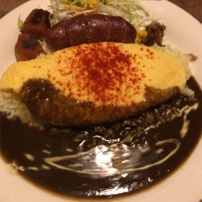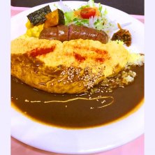 遊んだ後の遅め昼飯 ・オムカレー に道産野菜とチーズをトッピング♪ 久しぶりに「る〜るるる」をやりました♪( ´▽`) (る〜るるる と言うとタダで追加のカレールーを かけてくれます)