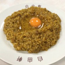 出で立ちからしてカレーピラフやドライカレーを想像してましたが、カレーとルーを混ぜわせた物。ご飯は緩めの炊き上がりで、おじやとは言いませんがその一歩手前の様な緩い食感。 カレーの味わいは優しくもキリッとしたスパシー感があります。具材は小さくカットされた玉ねぎと牛肉のみで至ってシンプル。 玉子を混ぜるとまろやかさが、ソースを混ぜるとコクと微かなフルーティ感が加わりこれまた美味い。