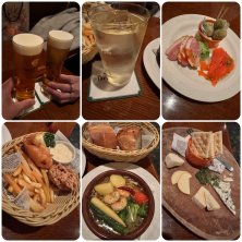 とある、日の夜ご飯は オールドイングランドさんへ🏴 サッポロビールソラチ1984🍺 デュワーズハイボール🥃 オードブル3種盛り合わせ🫒 イングランドコンボ🐟🐔 (鱈のフリット・唐揚げ・ポテトフライ) 彩り野菜と海老のアヒージョ🦐 チーズ盛り合わせ🧀
