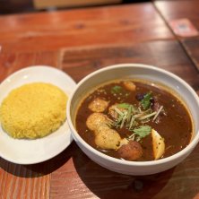 今日のランチはスープカレー。 スープは黄色(オリジナル)の2辛、メインの具は骨無しチキンで☆ 出汁っぽいさらさらスープがしつこくなくてすごく美味しかった~♪別のメインも気になるのでまた行こう(*^^*)