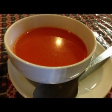 トマトのスープ、サラダ、ナン、豆とチキンのカレー、ラッシー!!! サラダは写ってないけど(笑)今日は中辛!!! ちょっと辛いけど旨かった!!!