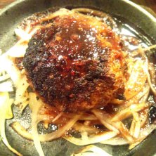 ばくだんハンバーグ(⌒^⌒)b 牛肉100%。なんと中は少し赤い! まわりの玉ねぎと 絡めて頂くと美味しい♥ 肉!!って、感じでよかったです(^^♪