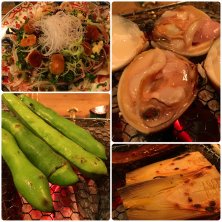 最終日はお友達に教えてもらった囲炉裏のお店に。実は土曜日満席だったのでリベンジ。 来れてよかった!何もかも美味しかった。 大きな蛤、空豆、筍、鮭のハラス燻製、鰹のタタキ、最後は土鍋炊き込みご飯でした。 ご飯はお腹いっぱいだったのでお土産にしてもらったよ。