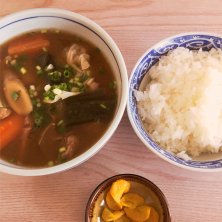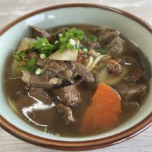 石垣島ランチ 新垣食堂 牛そば 1,000円 島北部で街中から車で30分以上の場所ですが、開店前から行列の人気店 広めのPも早々に満車です 牛肉の他に根菜が結構入っているのが特徴です 肉と野菜の旨みがスープに溶け込んでいて美味しいですね レンタカー借りて食べに来る価値ありの沖縄そばでした