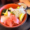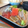 小田原丼。限定食。酢飯じゃないです。珍しい?とにかくボリュームがあり、その日に獲れた魚が載ってます。骨せんべいも美味しかった。平日のオープンと同時に行くのが良いです。限定食はすぐ無くなります。こちらはマグロのしぐれ煮とつみれ汁付き。とにかくご飯が多い!私は食べきれなかった。残念!ダンナに食べてもらいました。築地には劣るけど大満足。★★★☆☆