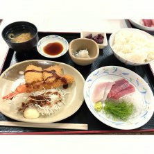 小田原港の人気の魚市場食堂。 店内満席! お刺身も煮魚もアジフライもエビフライも食べたーい!って私にはぴったりな大漁定食。 アジフライのふわふわさにびっくり。 煮魚もご飯がススムお味。 お刺身も新鮮でした! また来たい^_^