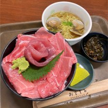 そう言えばここ行きたかったなと思いまぐろレストランに。 マグロの中トロ丼+蛤ラーメンハーフサイズで。