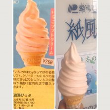 昨日食べた ⑳いちごソフトクリーム さっぱりで美味しかった´ ³`°) ♬︎*.:*