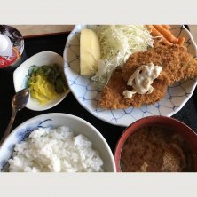 目移りする日替わり定食から、カキフライ定食950円にもずく酢150円をプラスしました。まだカキフライがあるのか〜と嬉しくなったのですが、運ばれてきた定食を見てカキのサイズにびっくり!!まるで、大きめの餃子のようでした・笑。本日は自分的には早めに入店したのですが7時半頃には看板の電気を消していたので、こちらで夜食べるときは、早めにくるのが吉っぽいですね!ごちそうさまです。 (=゚ω゚)ノ
