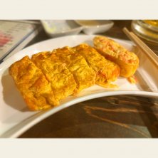 ゴーフラットのだし巻き卵を食べました。 福岡のだし巻き卵と違って甘くなく、お出汁の味がじゅわってました。一緒に入っていた桜エビがサクサク感とお出汁の濃厚さを足してくれていてお酒のつまみに合う旨味爆弾な一品で美味しかったです。