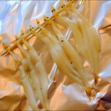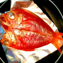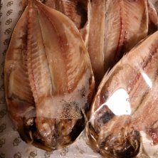 大酒豪会 熱海新年会旅行番外編 がっつり干物買ってきました。 えぼ鯛、かます、アジが2枚ずつに、きんめが一枚入って3000円のお得なセットと、一連150円のメザシを二連。 これらを焼いて呑むのが楽しみです❤️