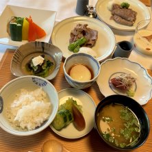 今週も由布院温泉❤️ 夕食はお部屋でゆっくりと〜✨ ★無花果天麩羅・鴨あられ揚げ ★青菜(春菊・水菜)と木の子(平茸・なめことえのきを掛け合わせた かきの木茸)お浸し