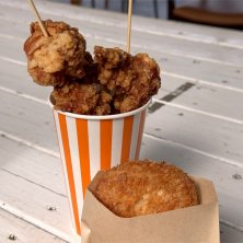 どんより天気で肌寒かったけど この、たこ焼き目当てに♪ 地元のおばさまが作ってくれてる間、 練炭の火鉢で暖をとりながら のんびり待ちます。 じゃこてん、じゃこカツも揚げたてだから絶品ですよ💖