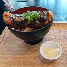 ・日替わり定食 (味噌ヒレカツとちくわの磯辺揚げ) ・犬山桃ごおり 🍧に🍑が入ったので💨💨 ランチを頼んだときに一緒にオーダーしないと、お目当ての🍧食べれないときがある😅
