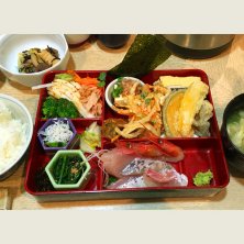 お造り、天ぷら、焼物、お浸し、酢の物、ご飯・味噌汁お代わり自由+コーヒー、一口チョコ このボリューム、クオリティーで1000円はやばい